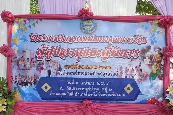 นายสุริยัน แจ่มแจ้ง นายกองค์การบริหารส่วนตำบลสุขสวัสดิ์ พร้อมด้วยคณะผู้บริหารดำเนินการจัดโครงการฝึกอบรมพัฒนาคุณภาพชีวิตผู้สูงอายุและผู้พิการ ประจำปีงบประมาณ พ.ศ. 2569 โดยมีกิจกรรมให้ความรู้พัฒนาการผู้สูงอายุผู้พิการ กิจกรรมส่งเสริมสุขภาพกาย สุขภาพจิต ธรรมะกับผู้สูงอายุ การทำกิจกรรมร่วมกันของผู้สูงอายุ และกิจกรรมรดน้ำดำหัวผู้สูงอายุ เพื่อส่งเสริมให้ประชาชนได้แสดงออกถึงความรัก ความกตัญญูกตเวที ณ วัดเขวาราษฎร์บำรุง หมู่ที่ 2 ตำบลสุขสวัสดิ์ อำเภอไพรบึง จังหวัดศรีสะเกษ