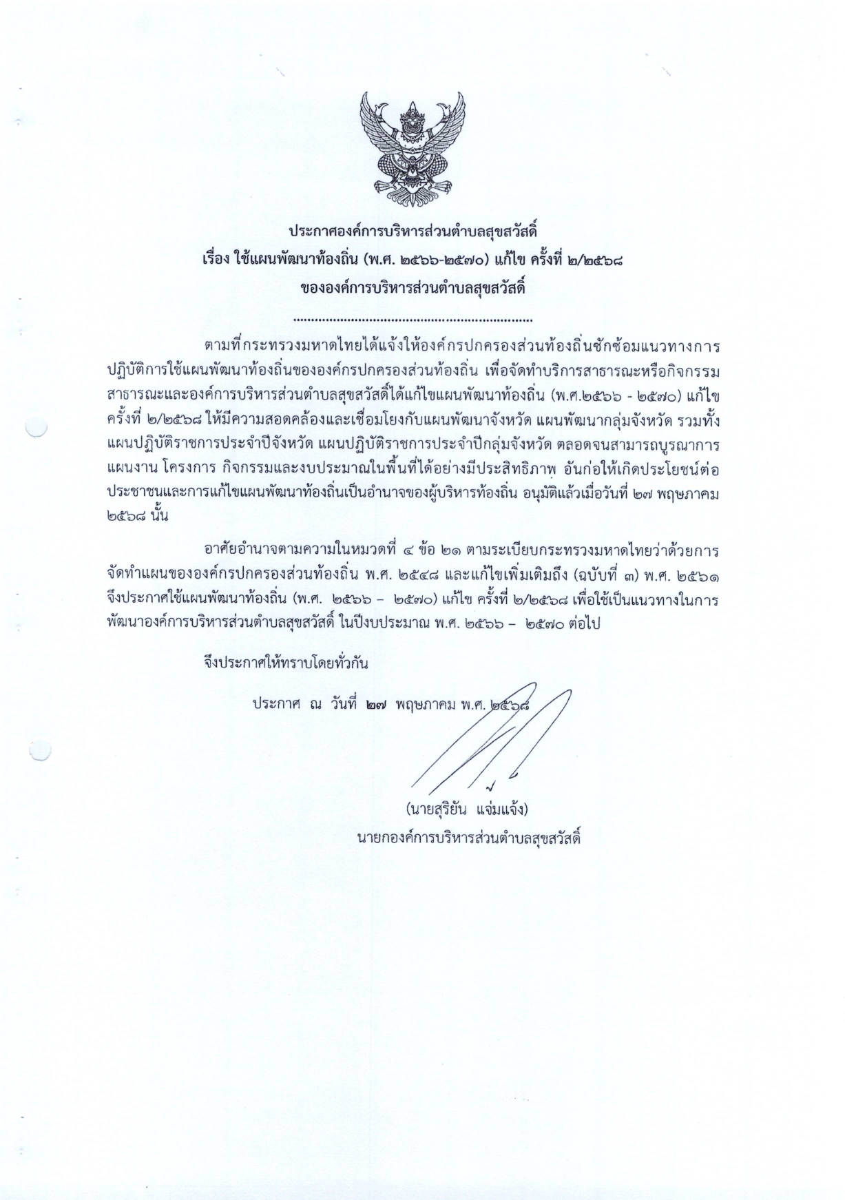 ประกาศองค์การบริหารส่วนตำบลสุขสวัสดิ์