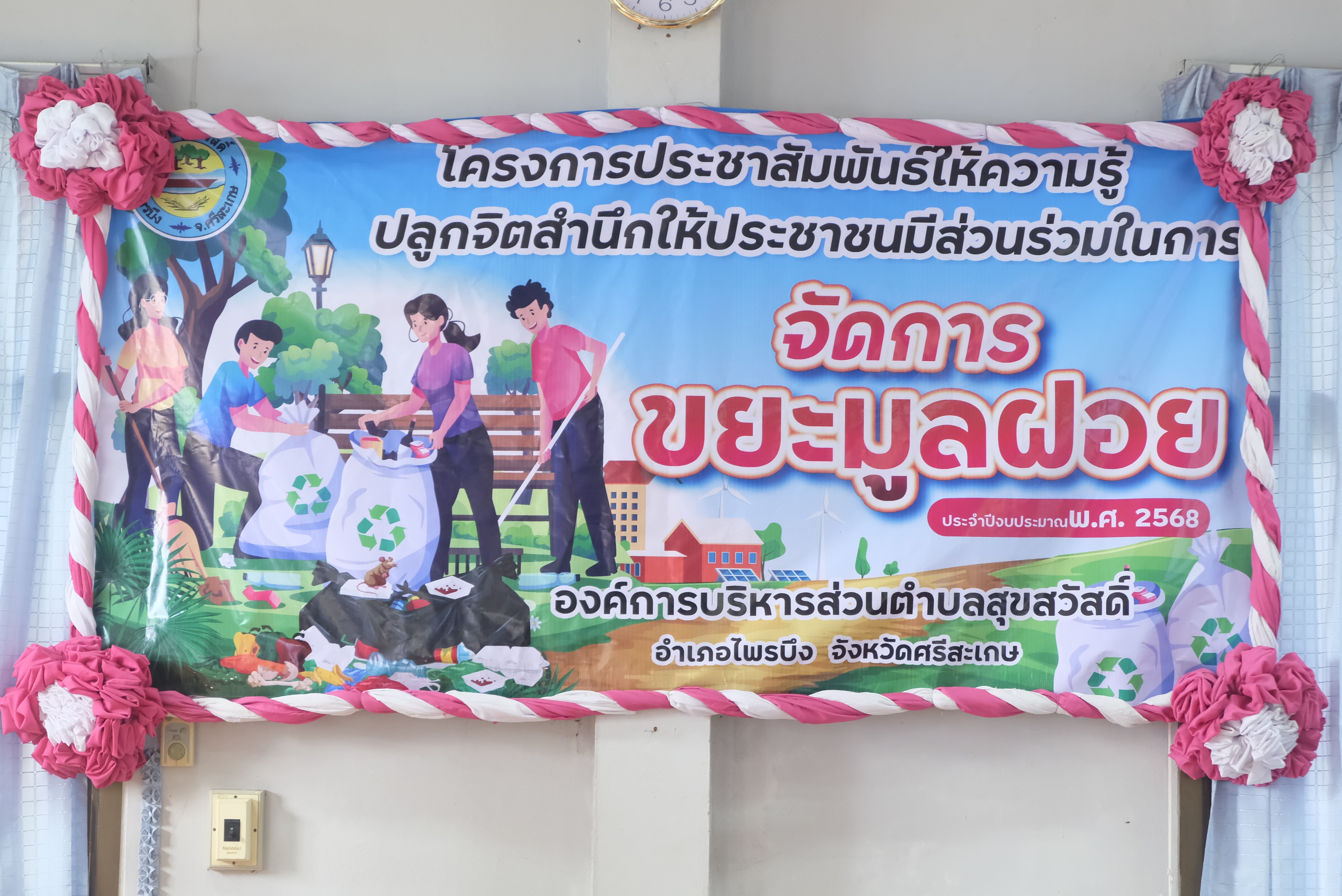 องค์การบริหารส่วนตำบลสุขสวัสดิ์ ดำเนินการจัดโครงการประชาสัมพันธ์ให้ความรู้ ปลูกจิตสำนึกให้ประชาชนมีส่วนร่วมในการจัดการขยะมูลฝอย ประจำปีงบประมาณ พ.ศ. 2568 ณ ห้องประชุมองค์การบริหารส่วนตำบลสุขสวัสดิ์ ตำบลสุขสวัสดิ์ อำเภอไพรบึง จังหวัดศรีสะเกษ โดยมีกิจกรรมประชาสัมพันธ์ให้ความรู้ หลักการ 3Rs การดำเนินการจัดทำถังขยะเปียกลดโลกร้อน การดำเนินการจัดตั้งกองทุนธนาคารคัดแยกขยะ (Recycleble Waste Bank) ขอขอบคุณวิทยากรจาก อบจ.ศรีสะเกษ ที่มาให้ความรู้ในครั้งนี้