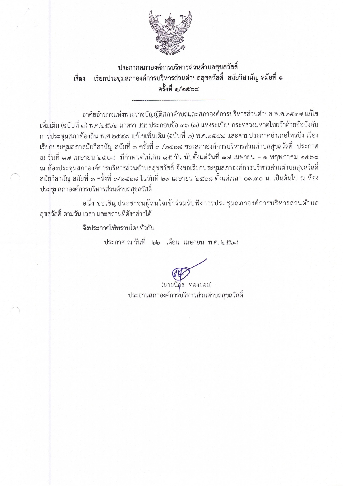 ประกาศสภาองค์การบริหารส่วนตำบลสุขสวัสดิ์